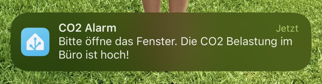 message: Bitte öffne das Fenster. Die CO2 Belastung im Büro ist hoch!